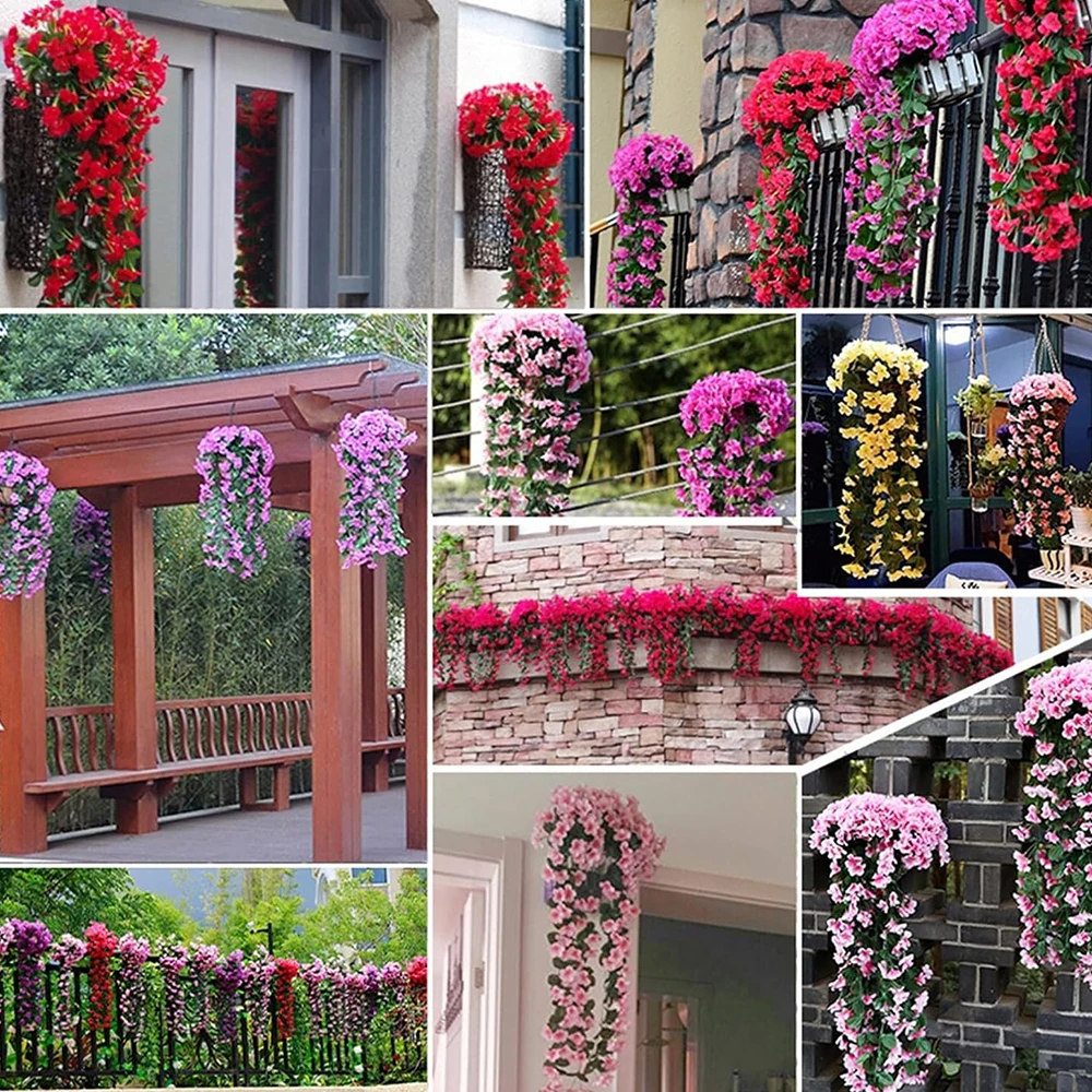 Different colors for you to choose. Silk flowers and leaves,plastic vines,Made of fabric material Silk and plastic premium quality,poisonless and harmless,Like real flowers vine but not scented, close to nature,could be reusable after your event.